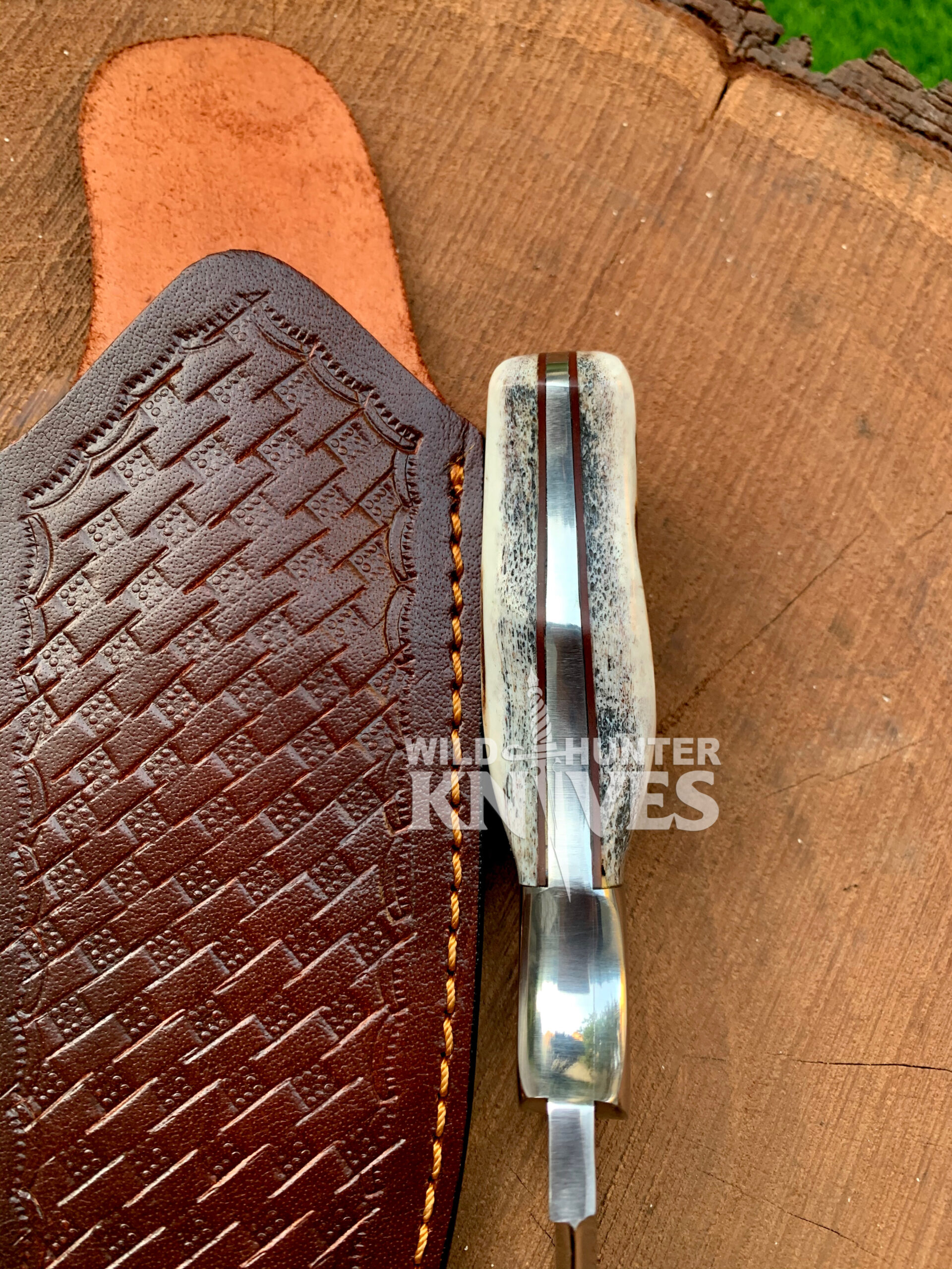 HANDMADE D2 STEEL GUT HOOK WITH DEER HORN HANDLE, THE BEST HUNTING OUTDOOR TOOLS